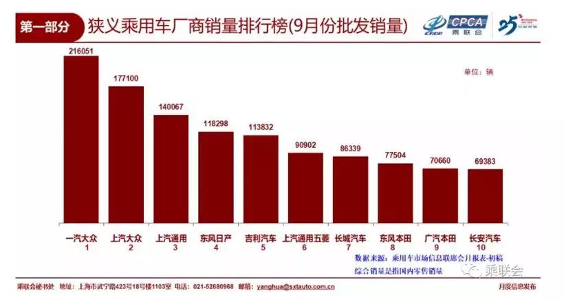 在这一新的竞争态势下,9月狭义乘用车厂商批发销量排名前十的车企再次出现变化。与8月份相比,9月份排名最大的看点是长安汽车入局,广汽本田取代广汽丰田,而北京现代无缘9月前十榜单。