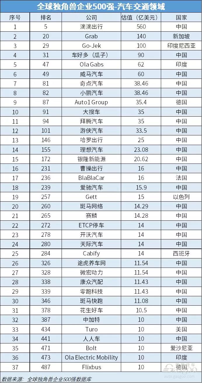 汽车交通领域37家企业上榜 滴滴出行居总榜单第五