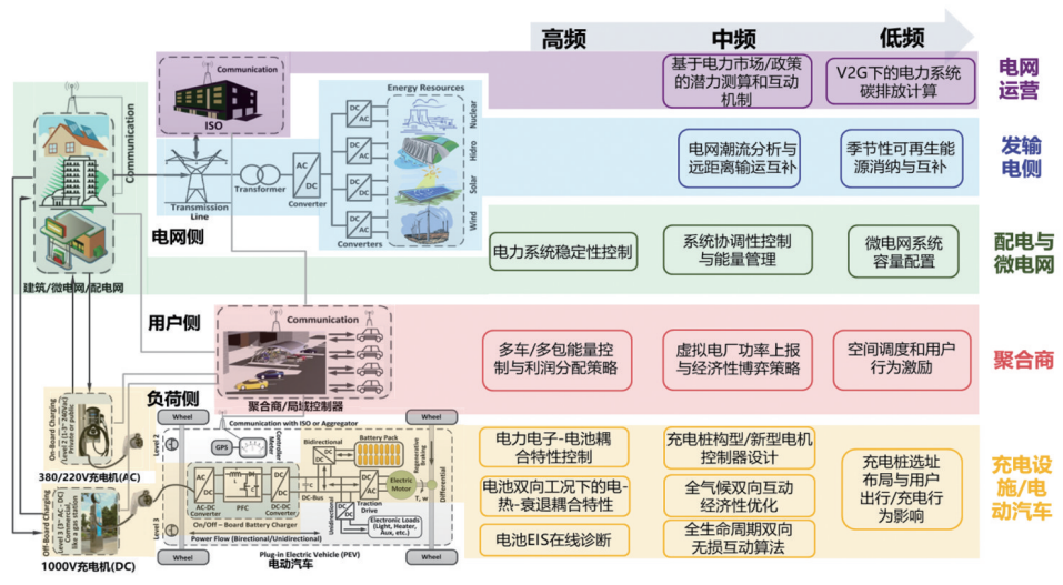 随着新能源汽车的大规模发展,电能补充和新型电网不再是单独发展,而是一体化协同发展。以新能源汽车超级快充为例,提高超级充电的效率仅靠增加充电机的功率是不够的,因为增加功率后,电池可能无法承受其较高的充电电流。即使新的电池可以适应高功率充电,老旧电池未必能够适应。同时,电池的安全与衰减管理以及寿命评估也是一个非常复杂的问题,需要考虑电池整个生命周期的性能衰退问题。另外,过大的充电电流会导致严重的发热损耗,因此必须提高系统电压以减小电流。为适应这种情况,电动汽车的电压制式已经从400V提高到800V,相应的电气系统也需要进行改造。此外,电网无法承受大功率充电带来的冲击,因此不能直接从电网获取电力。